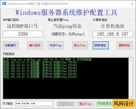 工具功能:修改3389端口,禁Ping,获取IP,pingIP等。
